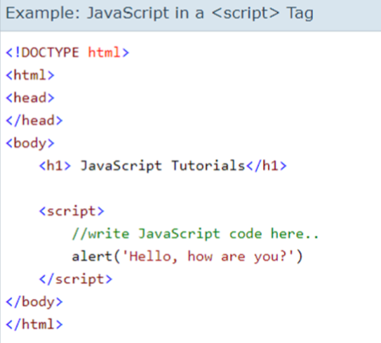If you don't want to write inline JavaScript code in the 'script '/script' tag, then you can also write JavaScript code in a separate file with .js extension and include it in a web page using 'script' tag and reference the file via src attribute.