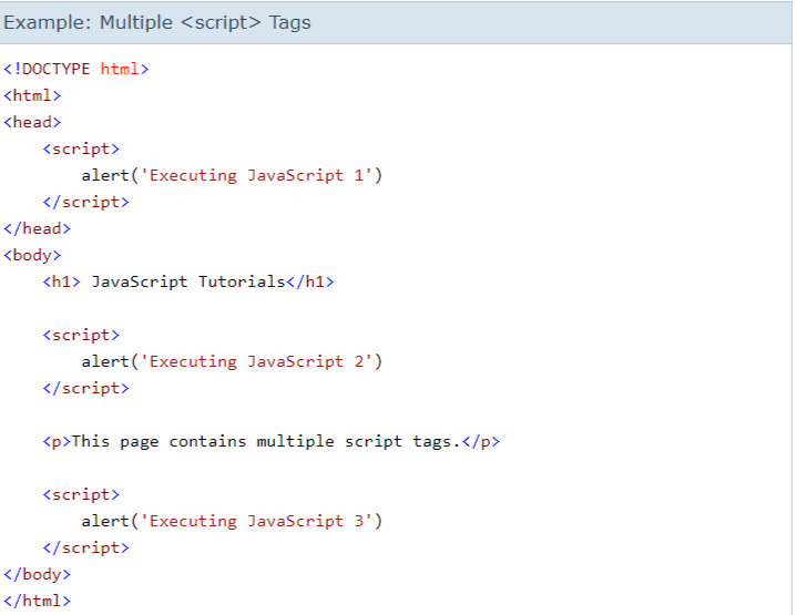 tag containing alert('Executing JavaScript 1') will be executed first, then alert('Executing JavaScript 2') will be executed, and then alert('Executing JavaScript 3') will be executed.