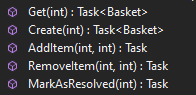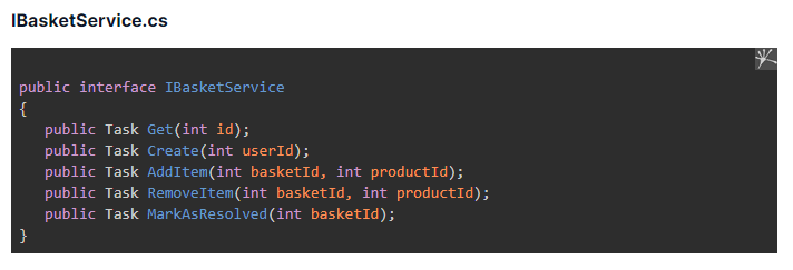 First, I defined an abstract interface IBasketService along with functions that basket service would implement.